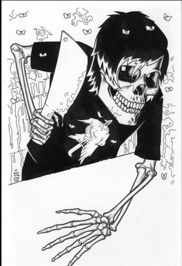 一张骷髅拿刀砍自己手臂的个性纹身图案_骷髅纹身图案大全_纹身图吧