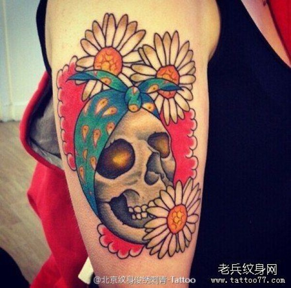 手臂骷髅菊花纹身_骷髅纹身图案大全_纹身图吧