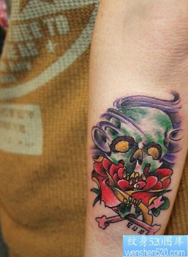 手臂绿色骷髅纹身图案_骷髅纹身图案大全_纹身图吧