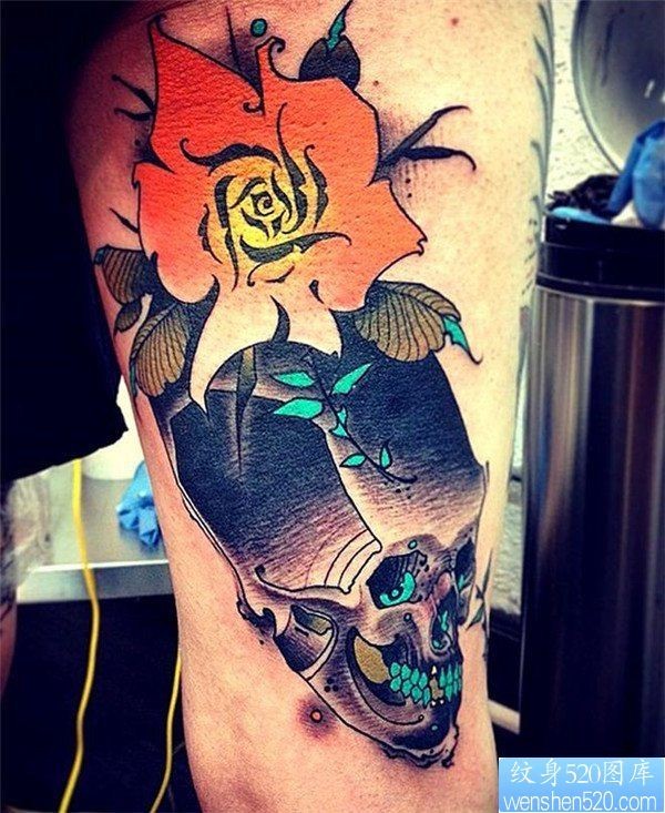 手臂骷髅菊花纹身_骷髅纹身图案大全_纹身图吧