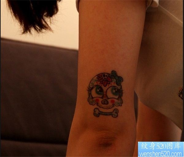 手臂彩色小骷髅头纹身图案_骷髅纹身图案大全_纹身图吧