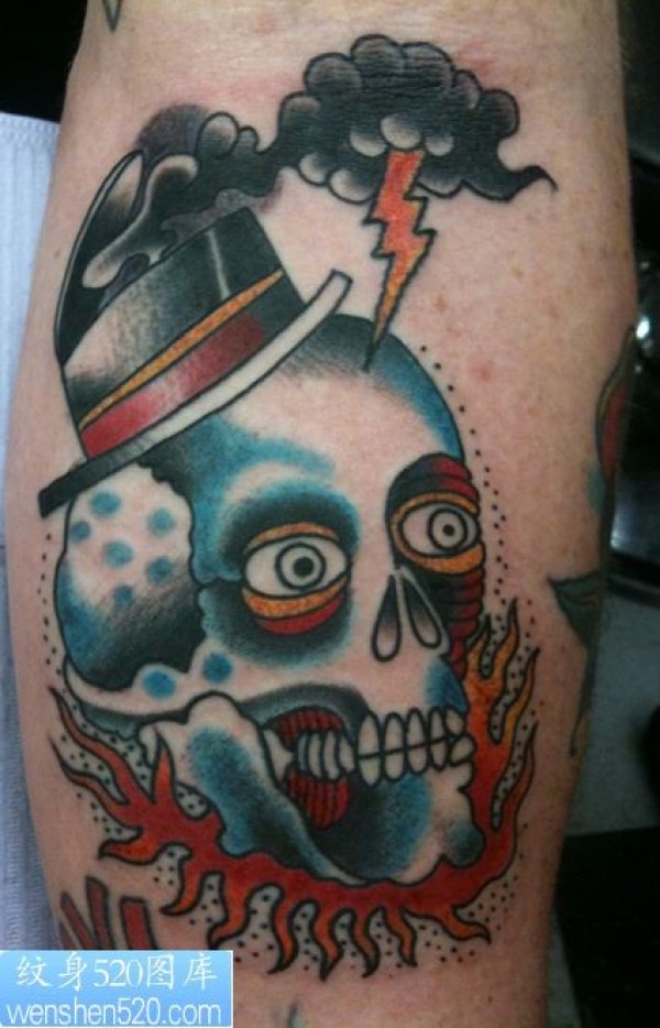 闪电击中骷髅纹身图案图案_骷髅纹身图案大全_纹身图吧