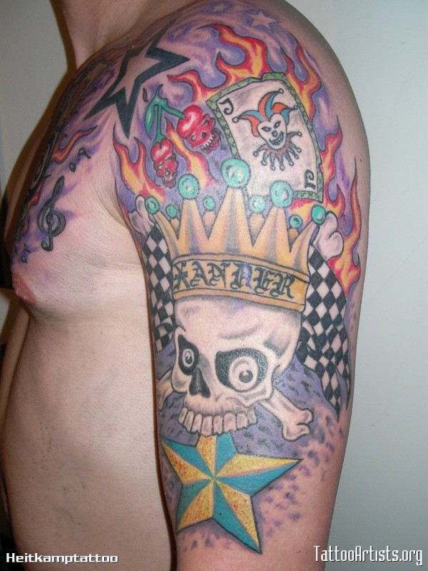 大臂上骷髅国王纹身_骷髅纹身图案大全_纹身图吧