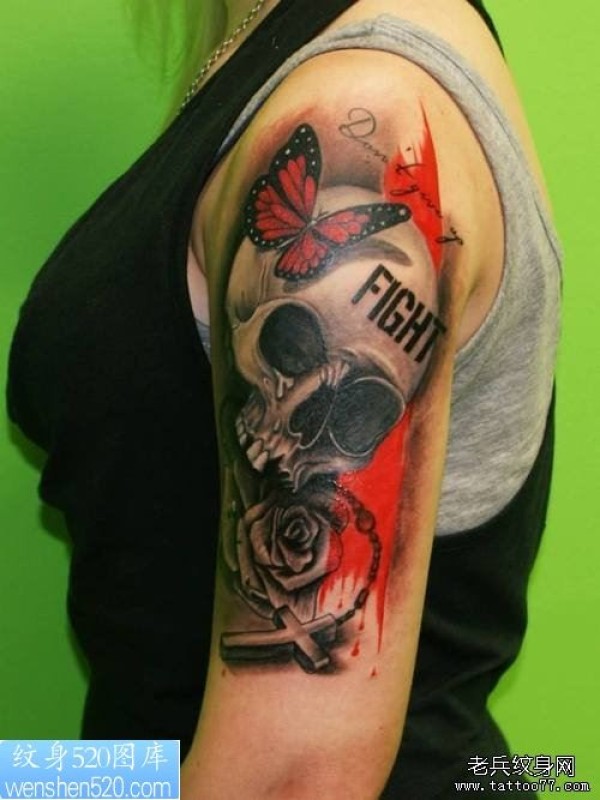 肩部五芒星骷髅纹身_骷髅纹身图案大全_纹身图吧