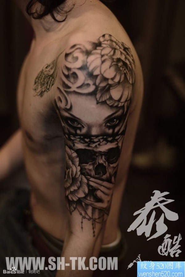 肩部五芒星骷髅纹身_骷髅纹身图案大全_纹身图吧