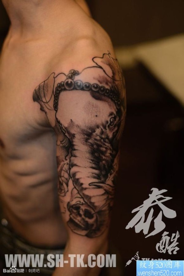 男生胳膊象财神骷髅纹身图片_骷髅纹身图案大全_纹身图吧