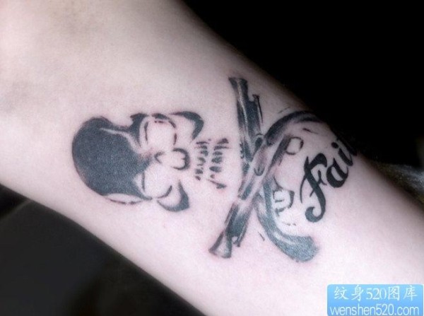 一幅个性潮流的手臂骷髅纹身图片由纹身520图库_骷髅纹身图案大全_纹身图吧