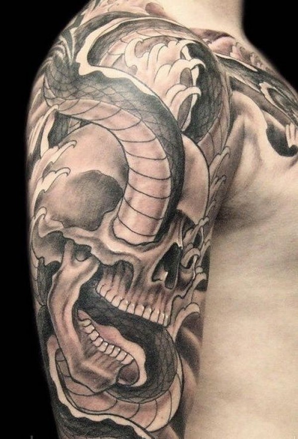 手臂骷髅蛇纹身图片由纹身图库推荐_骷髅纹身图案大全_纹身图吧