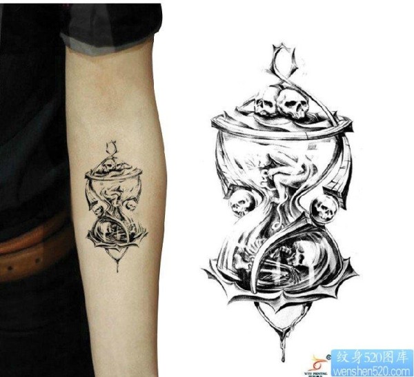 纹身520图库推荐一幅沙漏骷髅纹身图片_骷髅纹身图案大全_纹身图吧
