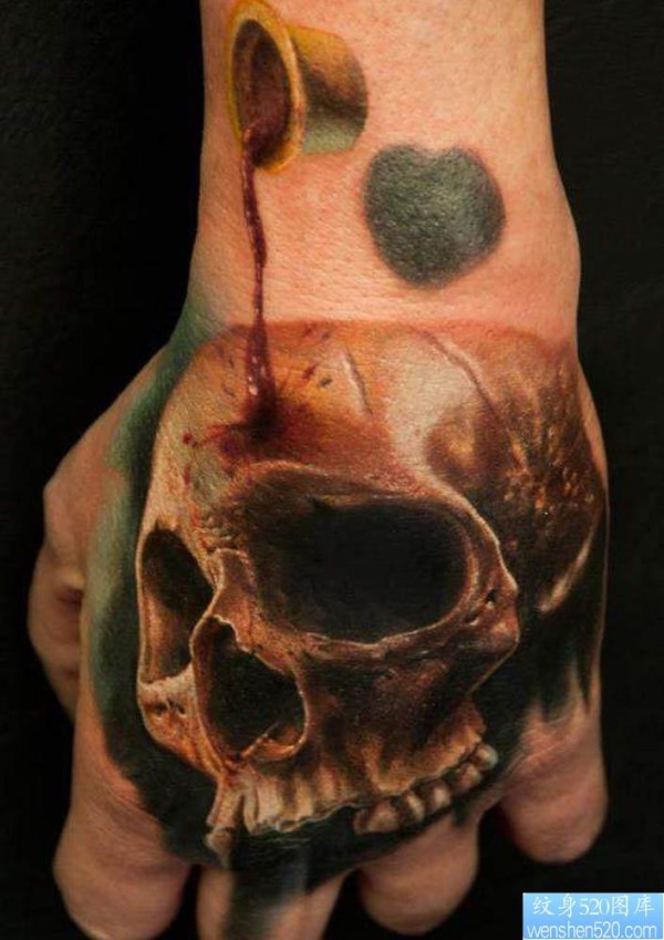 手背上一幅霸气的彩色骷髅纹身图片_骷髅纹身图案大全_纹身图吧