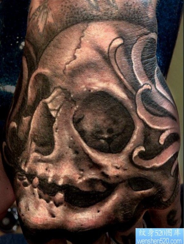 手背上一幅骷髅纹身图片_骷髅纹身图案大全_纹身图吧