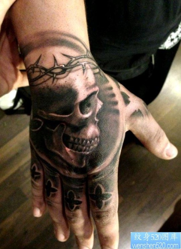 手背上一幅个性潮流骷髅纹身图片_骷髅纹身图案大全_纹身图吧