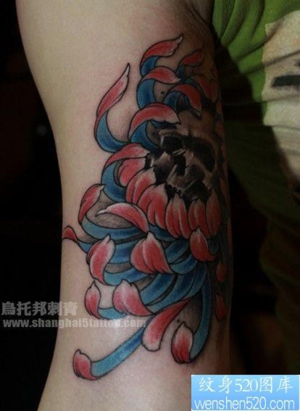 手臂好看经典的骷髅菊花纹身图片_骷髅纹身图案大全_纹身图吧