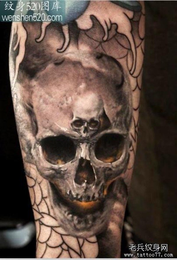 小臂上一张个性恐怖的骷髅头纹身作品_骷髅纹身图案大全_纹身图吧