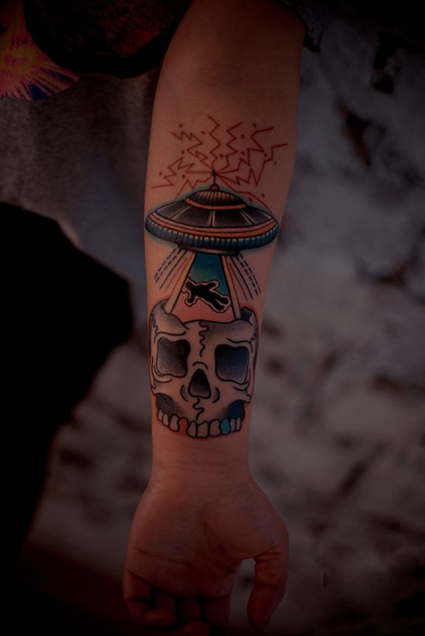 个性飞碟骷髅手臂纹身图案_骷髅纹身图案大全_纹身图吧