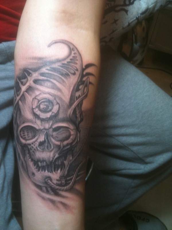 男士欧美风格恐怖骷髅手臂纹身图案_骷髅纹身图案大全_纹身图吧