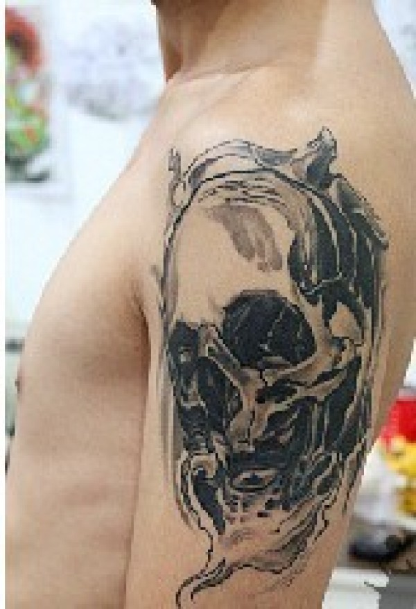 肩部五芒星骷髅纹身_骷髅纹身图案大全_纹身图吧
