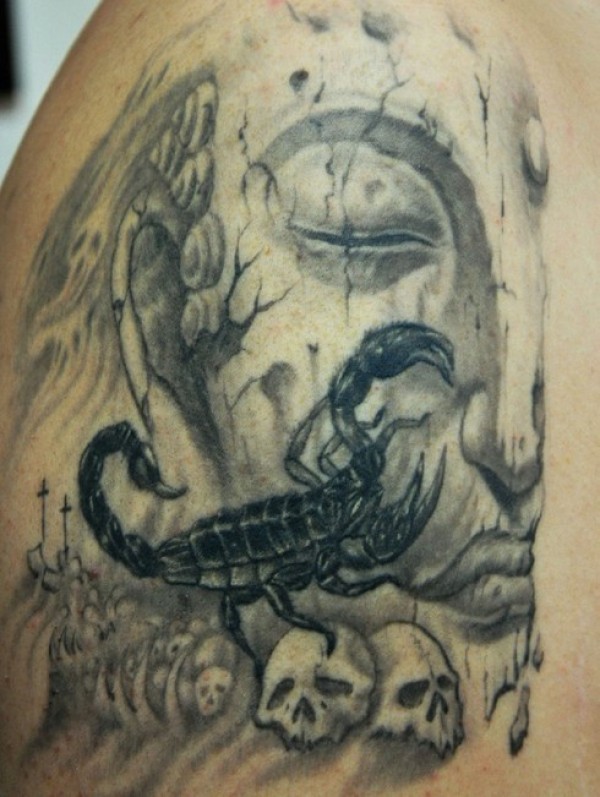 佛头蝎子与骷髅组合的纹身图案_骷髅纹身图案大全_纹身图吧