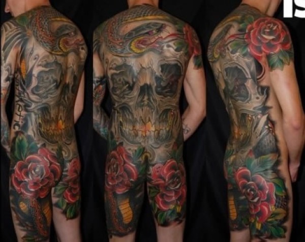 满背欧美写实骷髅纹身_骷髅纹身图案大全_纹身图吧