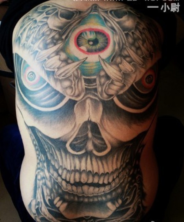 恐怖的后背恶魔骷髅头纹身纹身的尺寸比较大,_骷髅纹身图案大全_纹身图吧