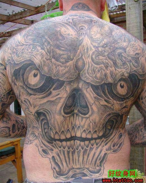 满背欧美写实骷髅纹身_骷髅纹身图案大全_纹身图吧