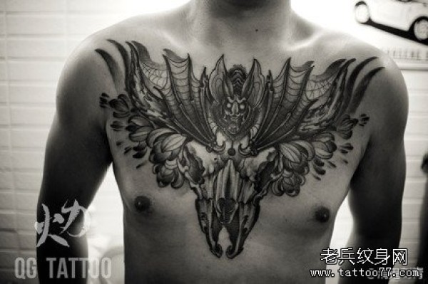 男人前胸时尚超酷的蝙蝠羊头骷髅纹身图案_骷髅纹身图案大全_纹身图吧