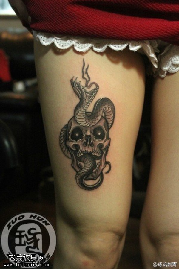 女性腿部骷髅蛇纹身图案_骷髅纹身图案大全_纹身图吧