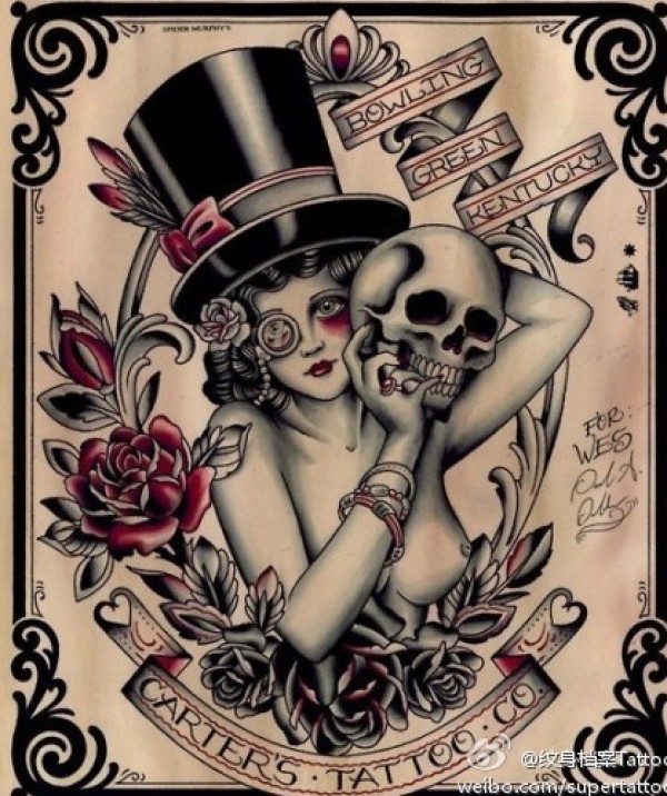 纹身图案经典欧美美女骷髅花卉纹身图案_骷髅纹身图案大全_纹身图吧