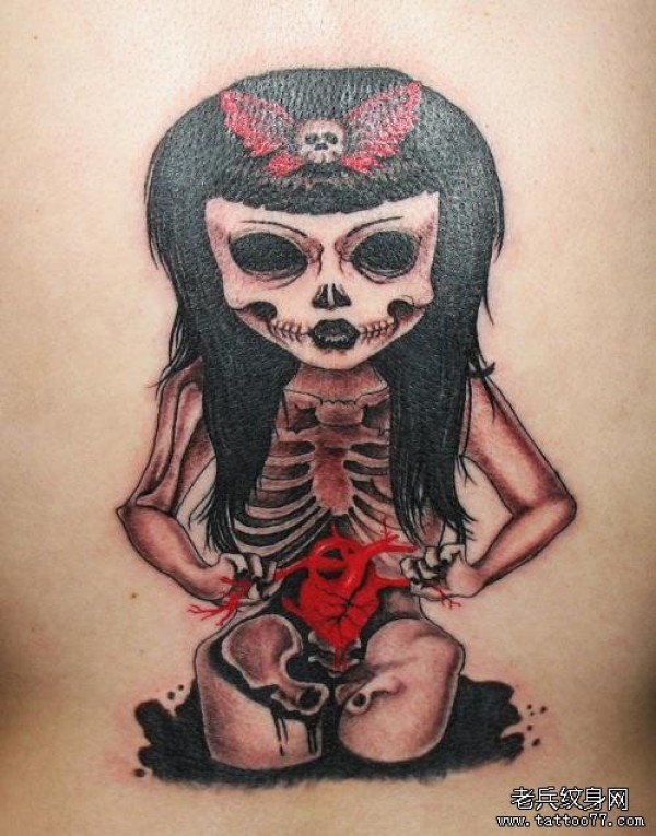背部骷髅美女纹身_骷髅纹身图案大全_纹身图吧
