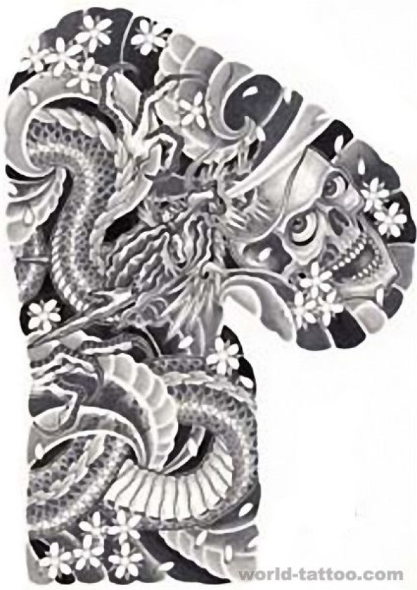 半胛龙骷髅纹身图案_骷髅纹身图案大全_纹身图吧