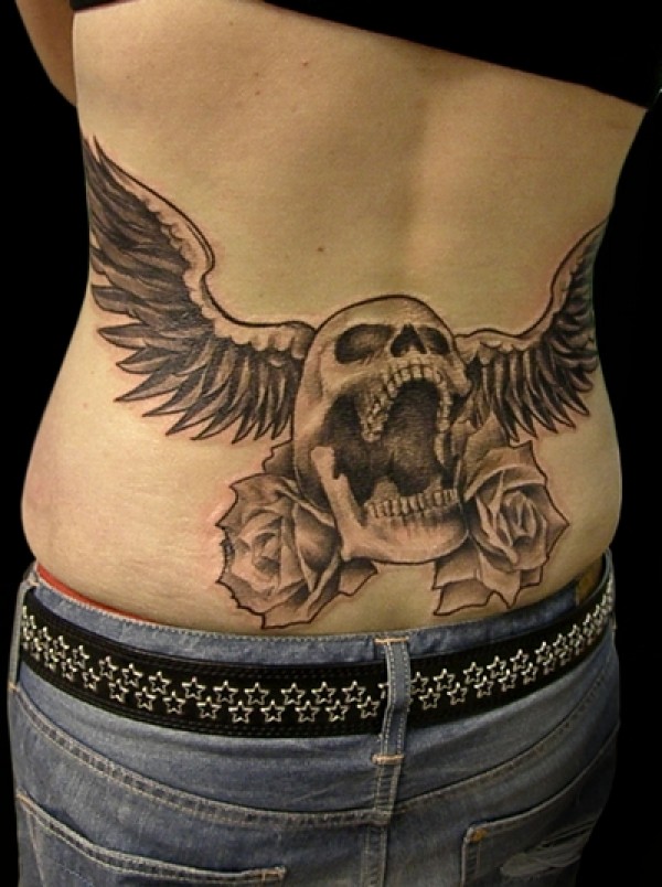 腰部翅膀骷髅纹身图案_骷髅纹身图案大全_纹身图吧