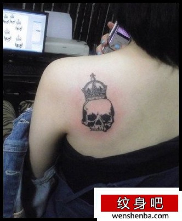 背部戴皇冠的骷髅纹身_骷髅纹身图案大全_纹身图吧
