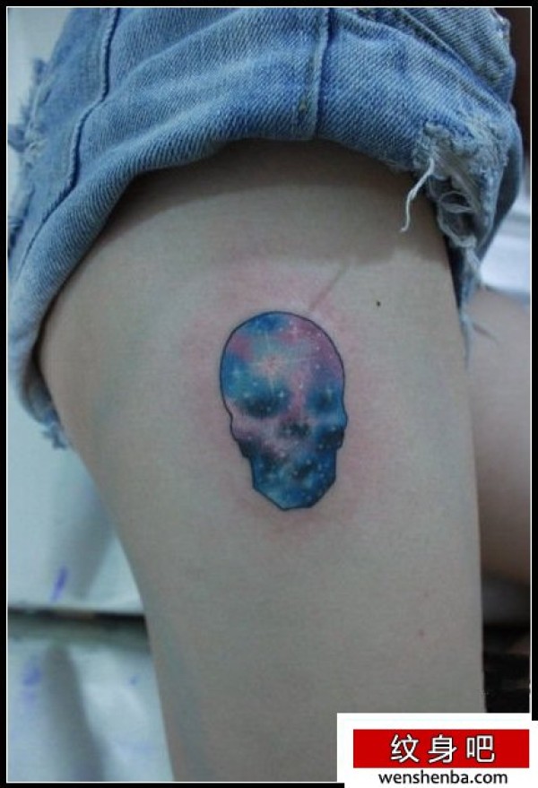 腿部星空骷髅纹身图案_骷髅纹身图案大全_纹身图吧