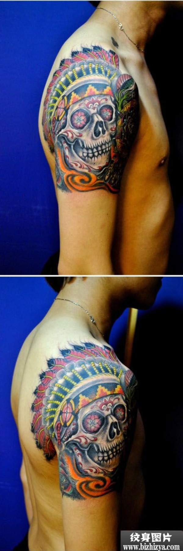 创意印第安人骷髅手臂纹身图案图片_骷髅纹身图案大全_纹身图吧