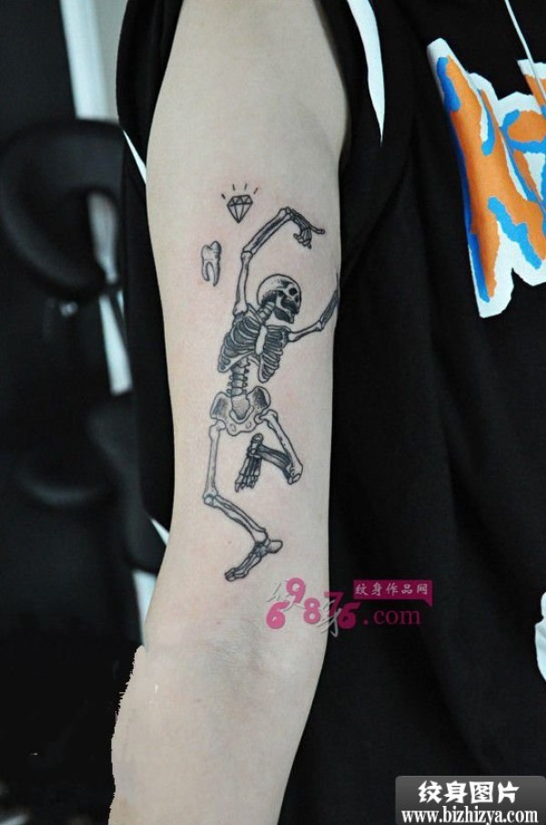 疯狂跳舞的骷髅人创意纹身图案图片_骷髅纹身图案大全_纹身图吧