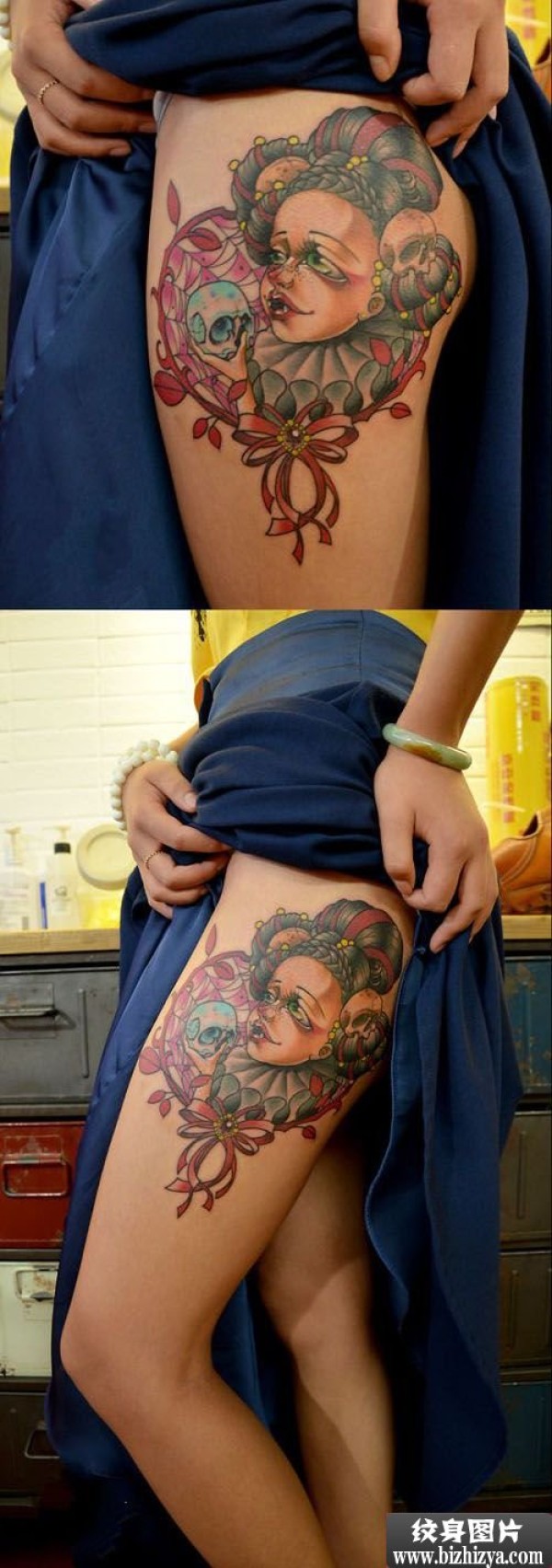 创意骷髅美女小丑大腿纹身图案图片_骷髅纹身图案大全_纹身图吧
