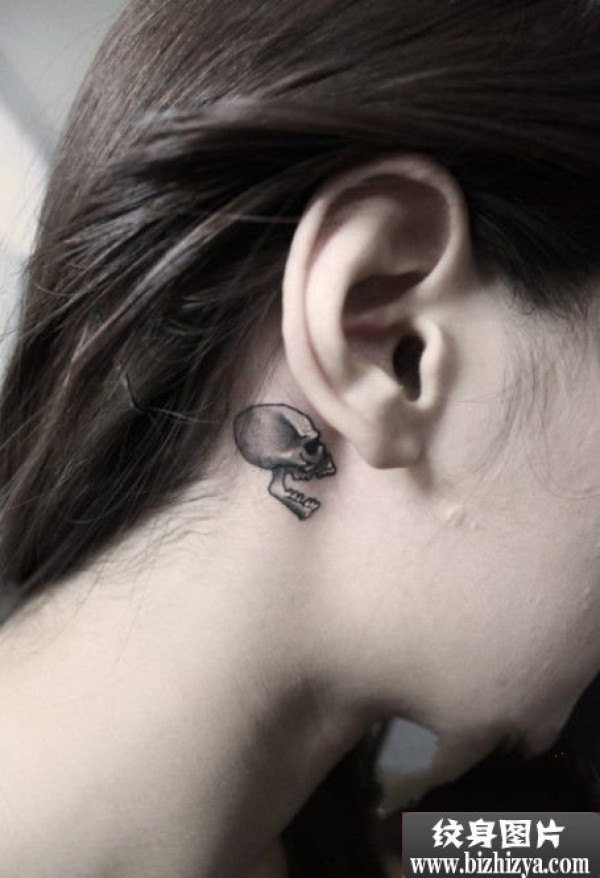 唯美个性小骷髅耳后纹身图案图片_骷髅纹身图案大全_纹身图吧
