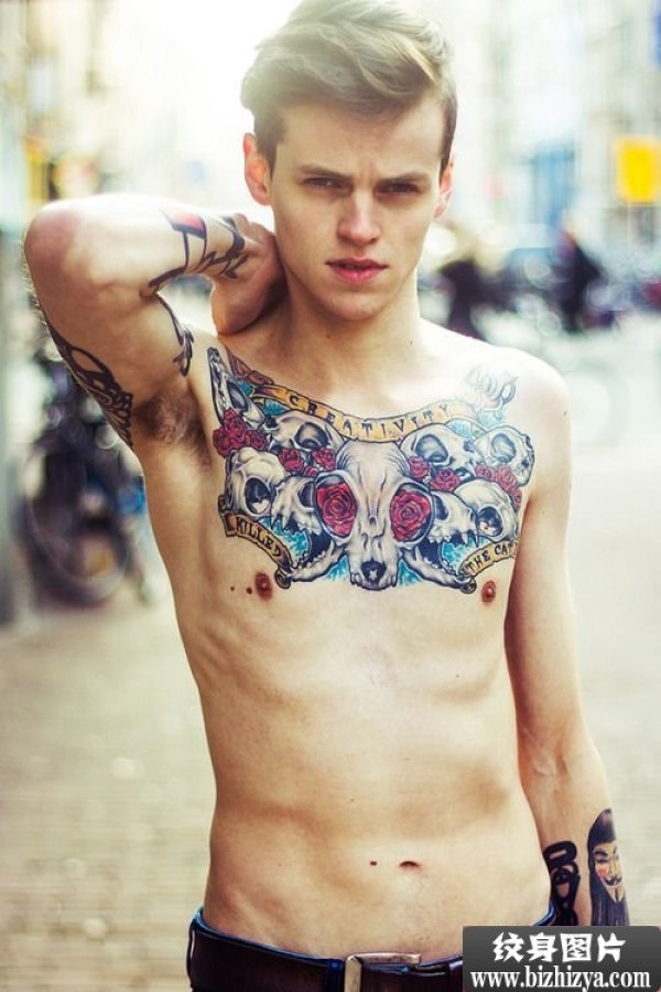 欧美型男胸部个性骷髅刺青图案图片_骷髅纹身图案大全_纹身图吧