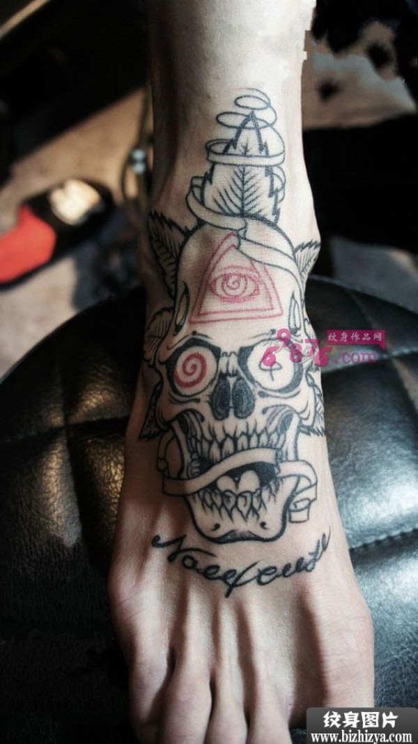 割线创意骷髅脚背纹身图案图片_骷髅纹身图案大全_纹身图吧