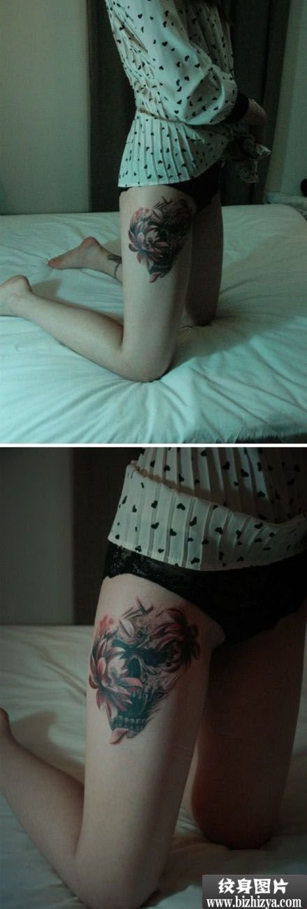 创意花与骷髅时尚大腿纹身图案图片_骷髅纹身图案大全_纹身图吧