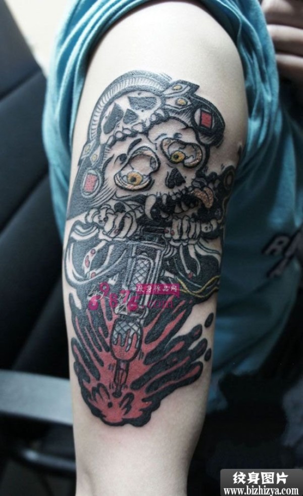 疯狂钻井骷髅个性手臂纹身图案图片_骷髅纹身图案大全_纹身图吧