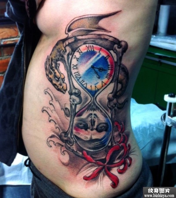 创意骷髅时间沙漏腰部纹身图案图片_骷髅纹身图案大全_纹身图吧