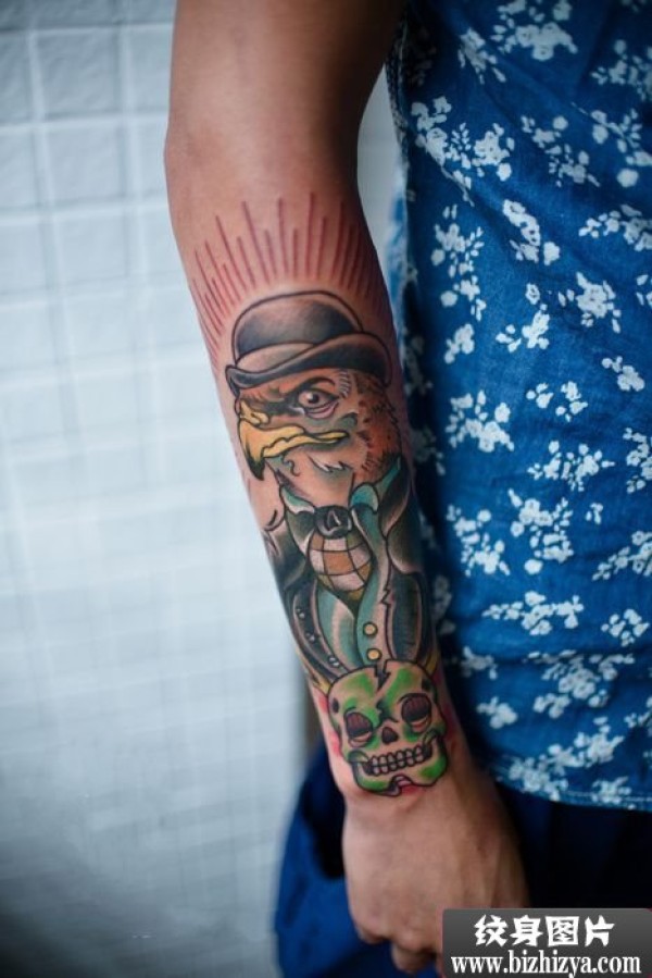 绅士老鹰骷髅另类纹身图案图片_骷髅纹身图案大全_纹身图吧