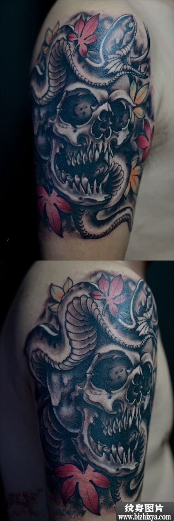 大臂眼镜蛇骷髅欧美纹身图案图片_骷髅纹身图案大全_纹身图吧