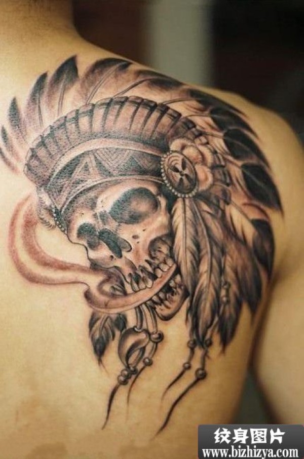 男人后背印第安骷髅个性纹身图案图片_骷髅纹身图案大全_纹身图吧