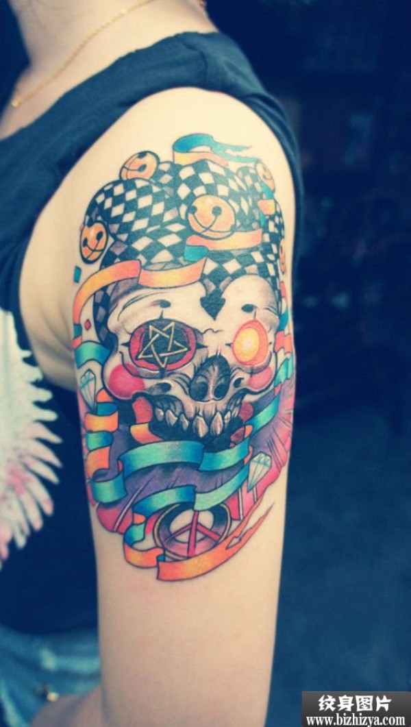 创意骷髅小丑欧美手臂纹身图案图片_骷髅纹身图案大全_纹身图吧