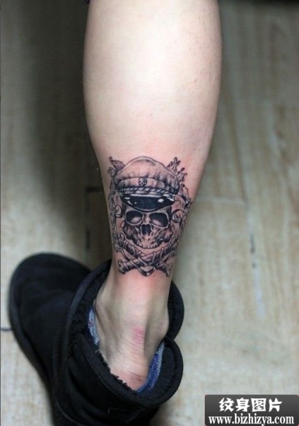 腿背海盗骷髅纹身图案图片_骷髅纹身图案大全_纹身图吧