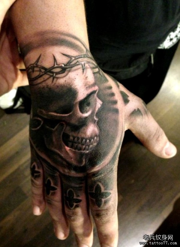 手背上一款个性时尚骷髅纹身图案_骷髅纹身图案大全_纹身图吧