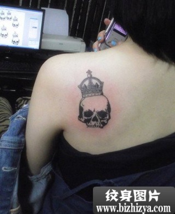 女生肩上皇冠骷髅时尚纹身图案图片_骷髅纹身图案大全_纹身图吧