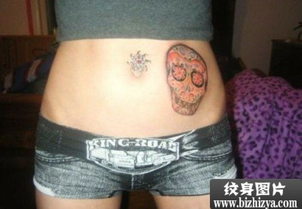 性感美女腹部骷髅纹身图案图片_骷髅纹身图案大全_纹身图吧